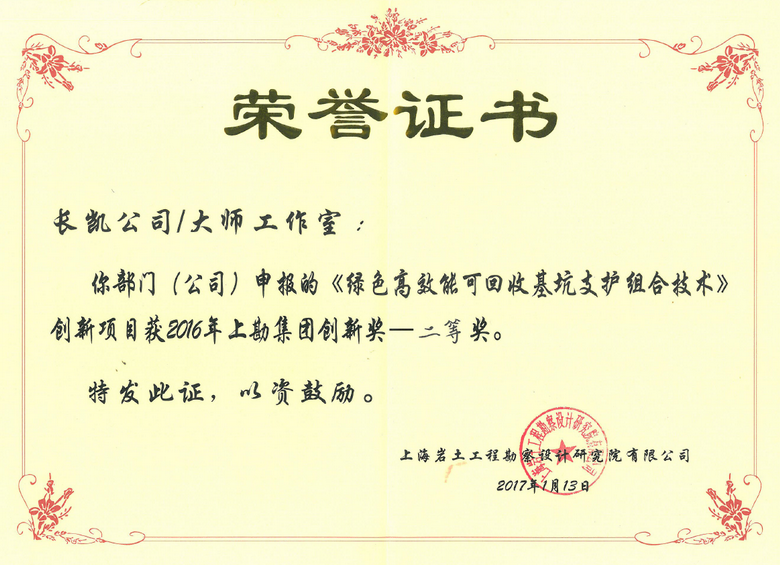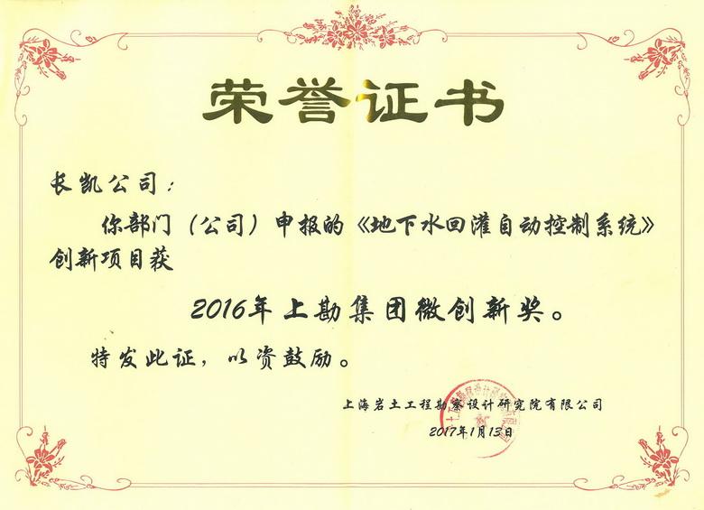 评委会投票结果统计完毕后,迎来了最激动人心的时刻,由武浩总裁宣布获奖名单。最终,我司与大师工作室共同申报的“绿色高效能可回收基坑支护组合技术”荣获2016年上勘集团创新奖二等奖。同时,会上还宣布了2016年上勘集团微创新奖获奖名单,我司降水团队的“地下水回灌自动控制系统”获此殊荣。