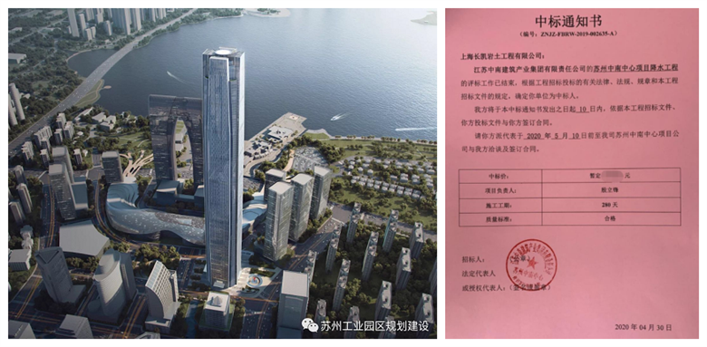 经过前期不懈的努力,长凯岩土再传捷报,成功中标苏州中南中心降水项目。能与这个位于苏州金鸡湖中央商务区的地标项目“牵手”,再次体现了长凯岩土自上而下团结一致的核心凝聚力,同时也与从董事长到总经理以及各分管副总经理以及总工、副总工等各级领导的悉心指导、关心帮助密不可分,最终由地下水治理专业公司总经理兼总工程师殷立锋带领团队长路冲锋,奏响凯歌!